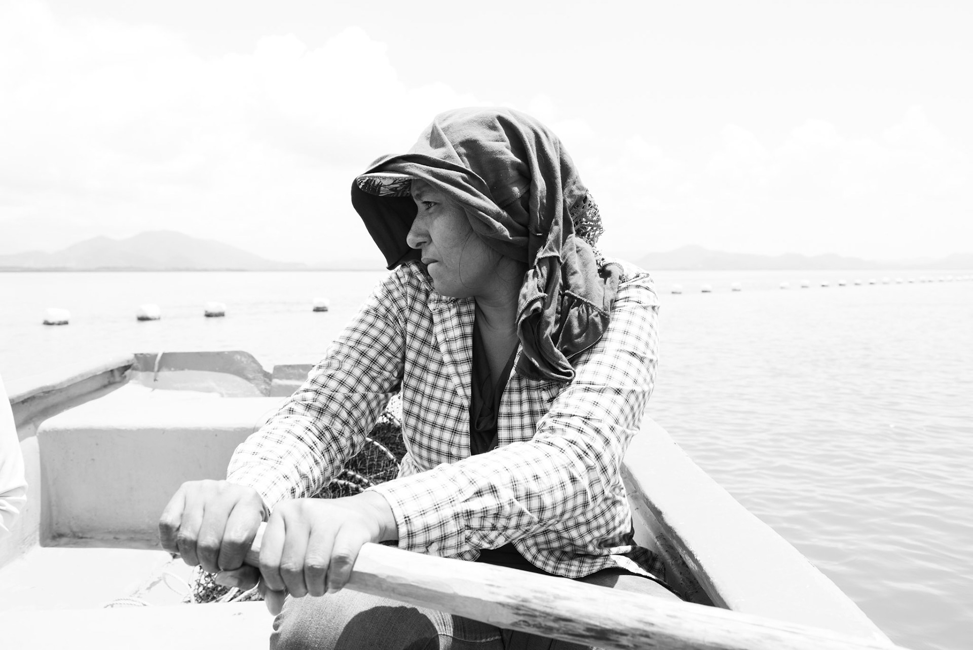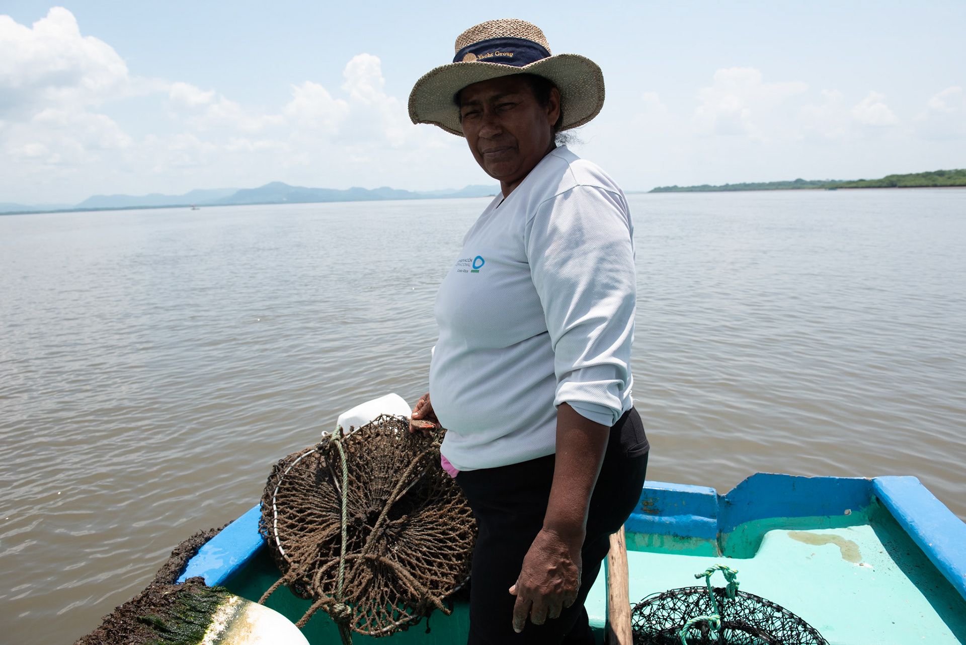 24-junio-2017. Este miércoles 24 de junio visitamos la zona de Puerto Palito en Costa Pajaros, Puntarenas. Desde los años 80, Doña Siday Arias, en conjunto con la Universidad Nacional, han dedicado tiempo para evaluar las posibilidades del cultivo de las Ostras en el Golfo de Nicoya. Hoy día cuentan con 6 granjas. En Puerto Palito, nos encontramos con un grupo de trabajadores que se encargaban cada uno de su tarea: limpieza, selección de Ostras por tamaño, llevar nuevamente al mar, a las que no cumplían con el tamaño mínimo para la comercialización (6cm), entre otras labores. Fotos: Nina Cordero. En la Fotografía: ella es Eugenia Fernandez, quién se encaminaba a la lancha para devolver al mar la Linterna con las Ostras que no cumplían el tamaño de los 6 cm para la comercialización.